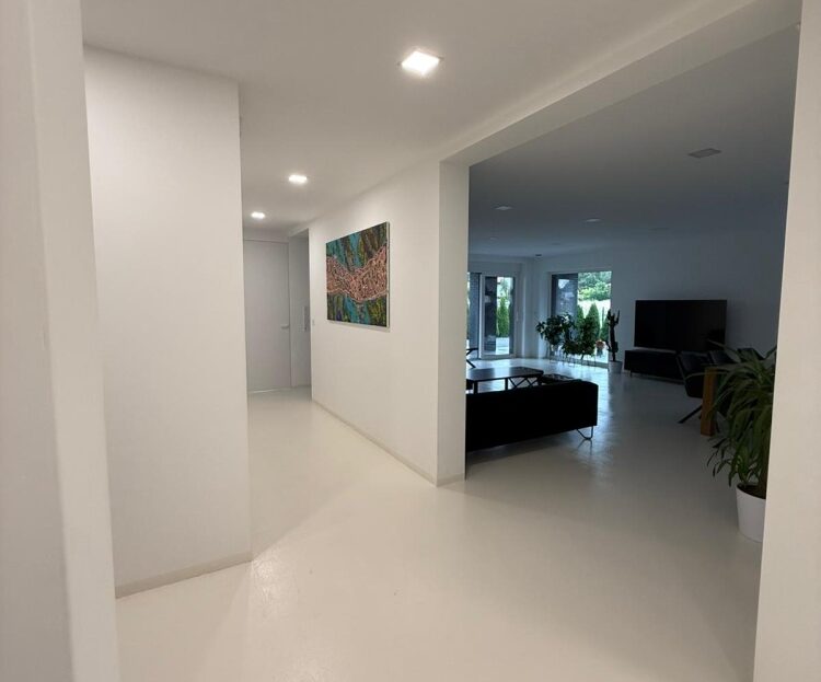 Drzwi wewnętrzne, zewnętrzne oraz okna w całym domu wykonane z aluminium co zwiększa poziom bezpieczeństwa oraz podnosi standard wykonania.