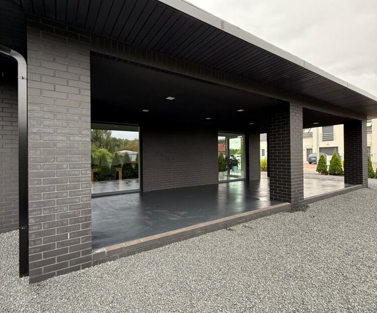 Elewacja oraz ogrodzenie nieruchomości wykonane z klinkieru