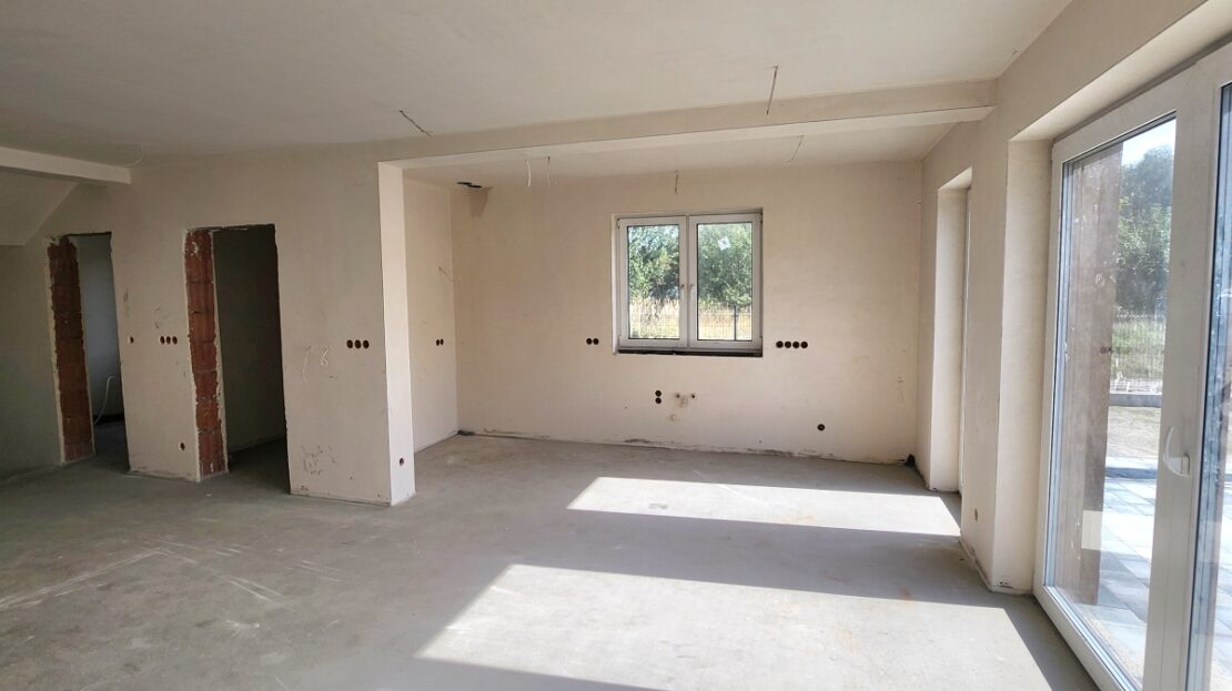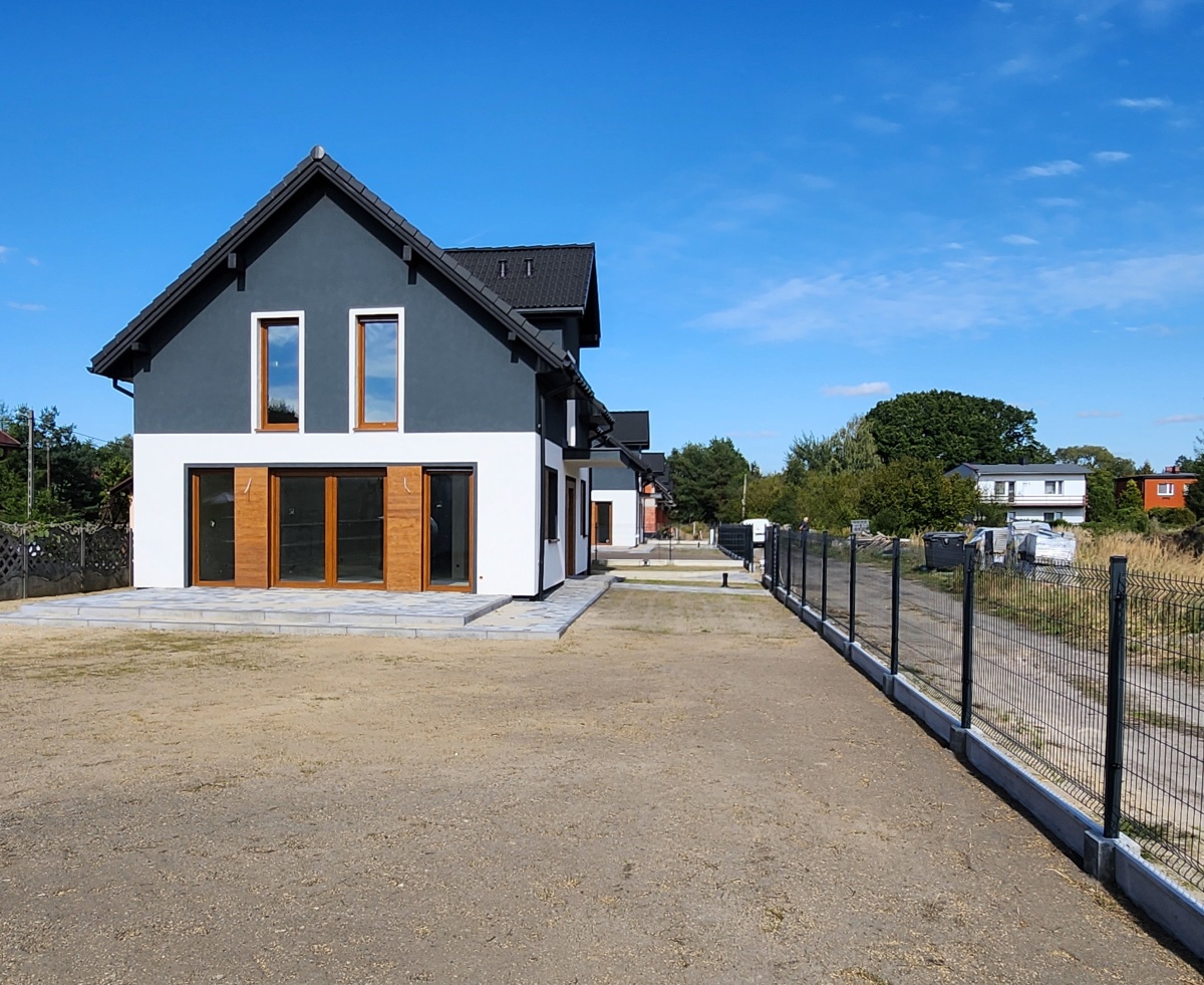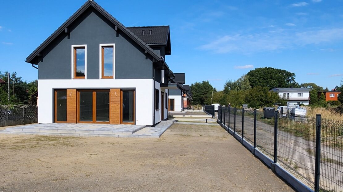 Dom wyróżnia się bardzo słonecznym salonem oraz dużym, wybrukowanym tarasem, idealnym do wypoczynku. Lokalizacja zapewnia ciszę i kontakt z naturą, jednocześnie oferując pełną infrastrukturę w pobliżu.