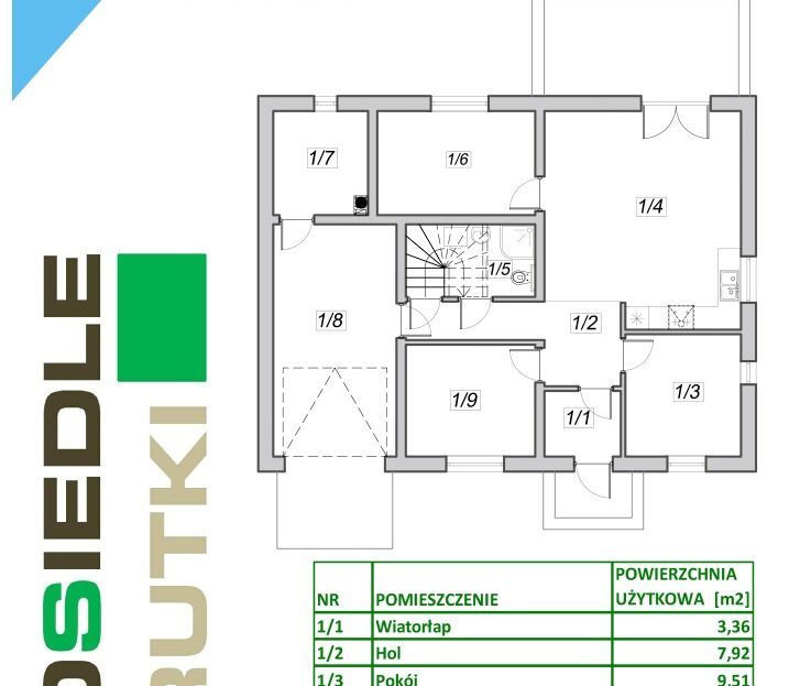 Dom z poddaszem z możliwością jego wykorzystania na użytkowe, rozkład pomieszczeń w poszczególnych budynkach zgodnie z załączonymi metryczkami budynków.