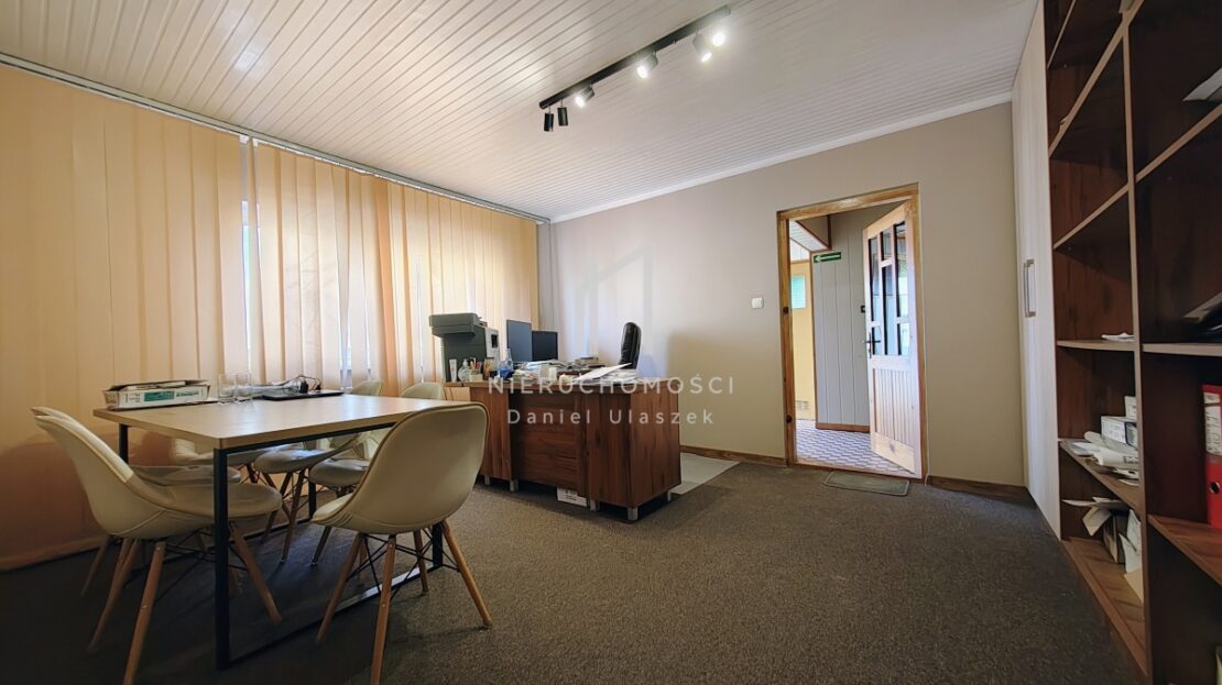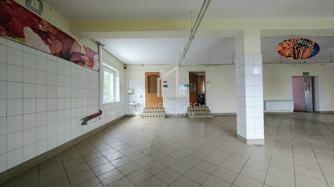 Na parterze znajduje się duża sala z witrynami, a w piwnicy – przestrzeń magazynowa lub użytkowa. Na piętrze – niezależne mieszkanie (6 pokoi z aneksem kuchennym), które może pełnić funkcję zaplecza lub wynajmu długoterminowego.
