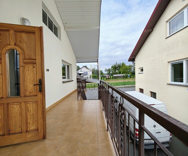 W skład oferty wchodzi także przestronny lokal usługowy zlokalizowany przy głównej drodze, z doskonałą widocznością i dużym ruchem samochodowym.