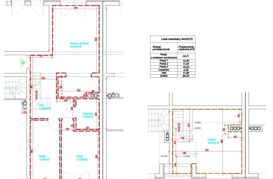 Piękne dwupoziomowe mieszkanie o powierzchni prawie 81 m2 usytuowane jest na 3. piętrze kameralnego, trzypiętrowego budynku z 2012 roku. Mieszkanie po podłodze jest większe ale poniżej skosów 1,4 metra powierzchnia nie jest wliczona do powierzchni użytkowej. Daje to bardzo duże możliwości aranżacji.