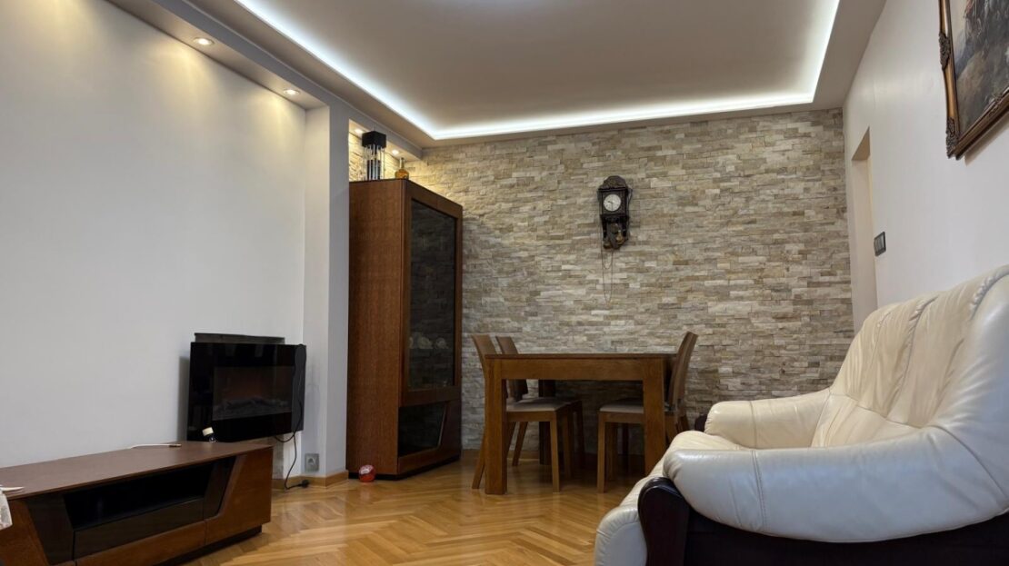 Mieszkanie usytuowane na parterze, składające się przestronnego salonu z wyjściem na balkon, oddzielnej kuchni z oknem, dwóch sypialni, przedpokoju oraz łazienki i oddzielnego WC. Mieszkanie po generalnym remoncie, również wymiana instalacji elektrycznej, w pełni wyposażone i umeblowane, zatem jest możliwość zamieszkania od razu bez żadnych nakładów finansowych.