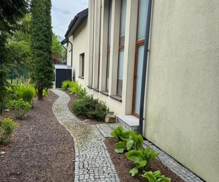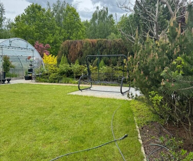 Przepiękny ogród jak z bajki z owocowymi krzewami, kwiatami, krzewami ozdobnymi i drzewami. Na działce znajduje się domek ogrodowy. Działka dobiega do granic rzeki, można spacerować w przepięknym otoczeniu zieleni słuchając szumu przepływającej wody.