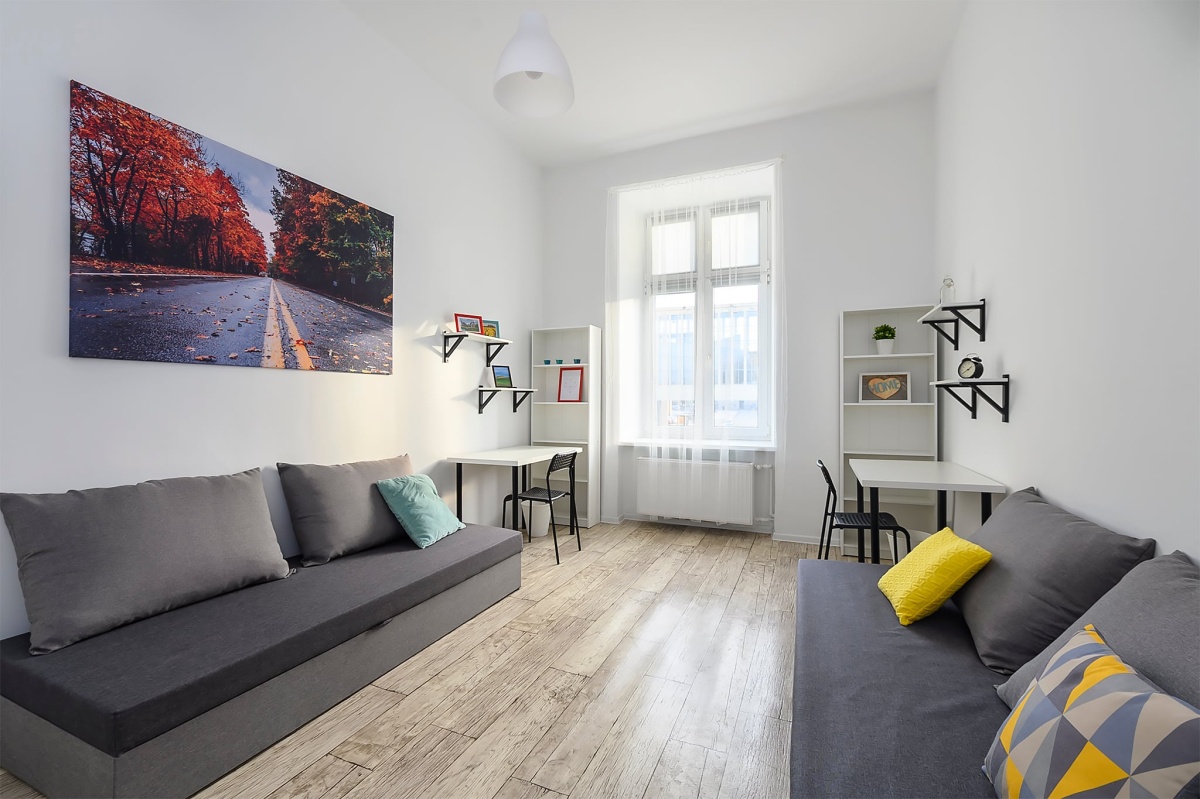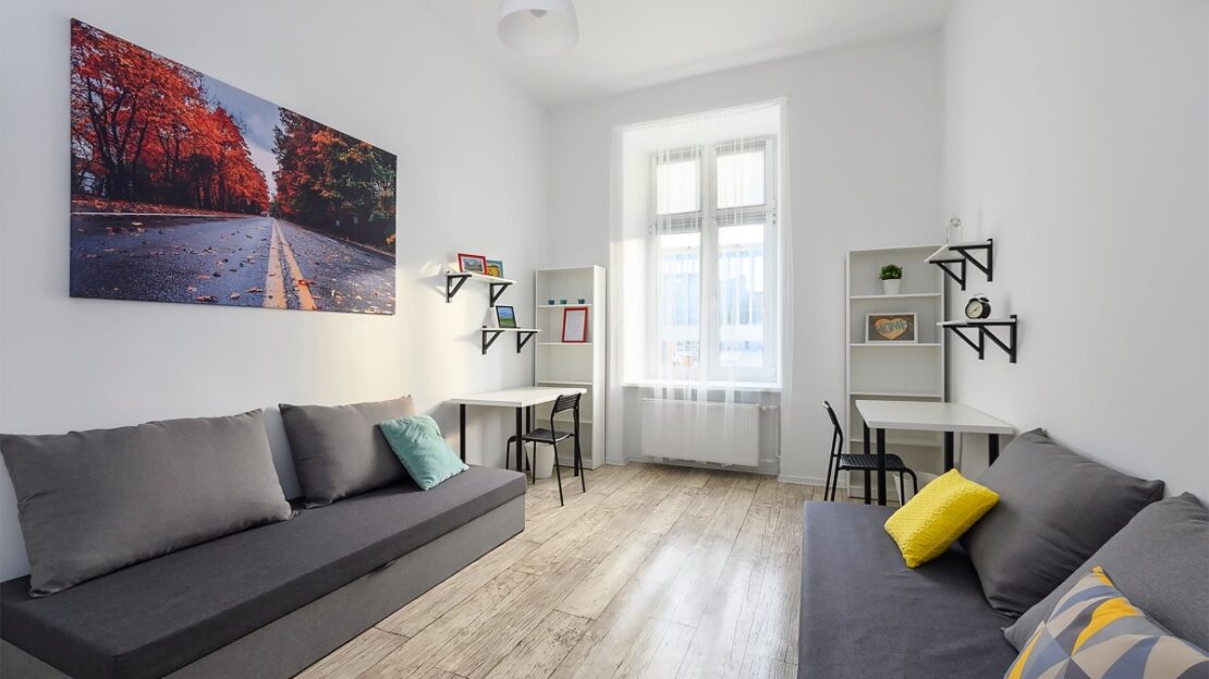 Pokój znajduje się w mieszkaniu ścisłym centrum Łodzi przy ul. Jaracza 58, zaledwie: