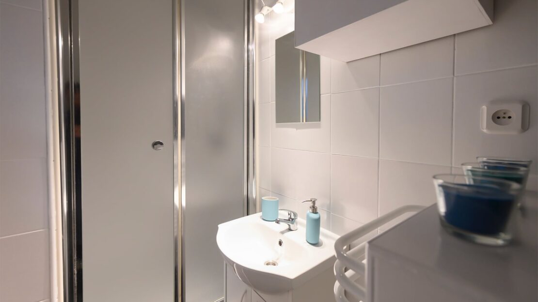 Łazienki: dwie osobne łazienki z WC, umywalką i prysznicem.
