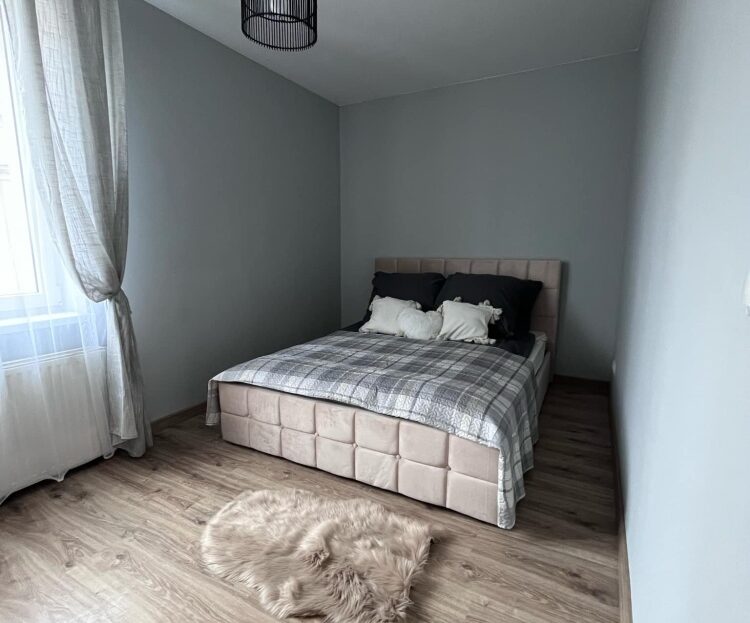 Komfortowa sypialnia – dwuosobowe łóżko, dużo miejsca na rzeczy