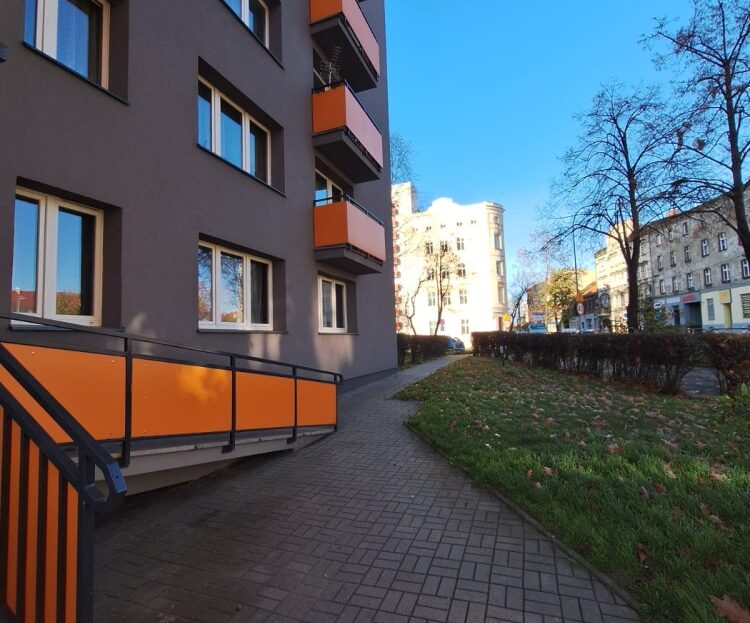 Do budynku prowadzi podjazd dla wózków, a od wejścia do mieszkania nie ma żadnych stopni ani progów, co czyni je idealnym rozwiązaniem dla osób starszych, z ograniczoną mobilnością lub z niepełnosprawnością.