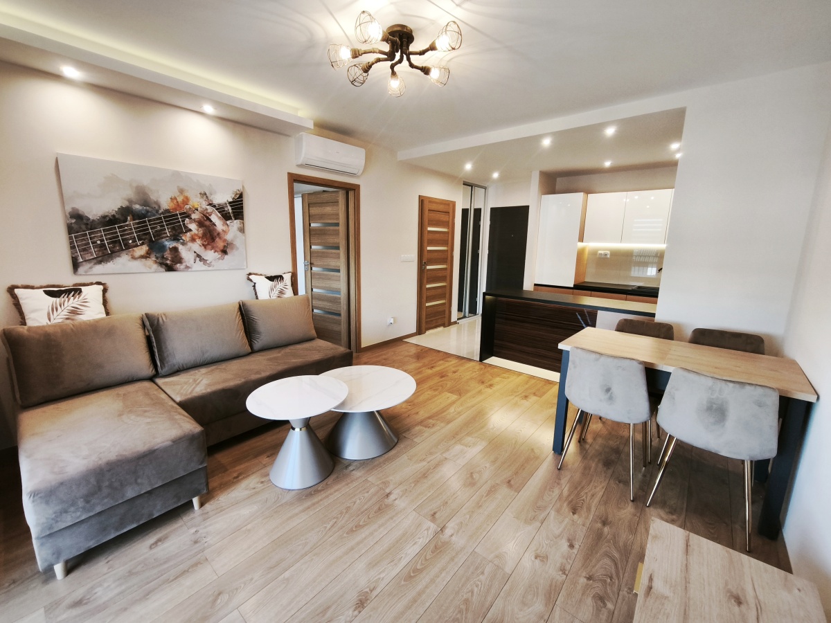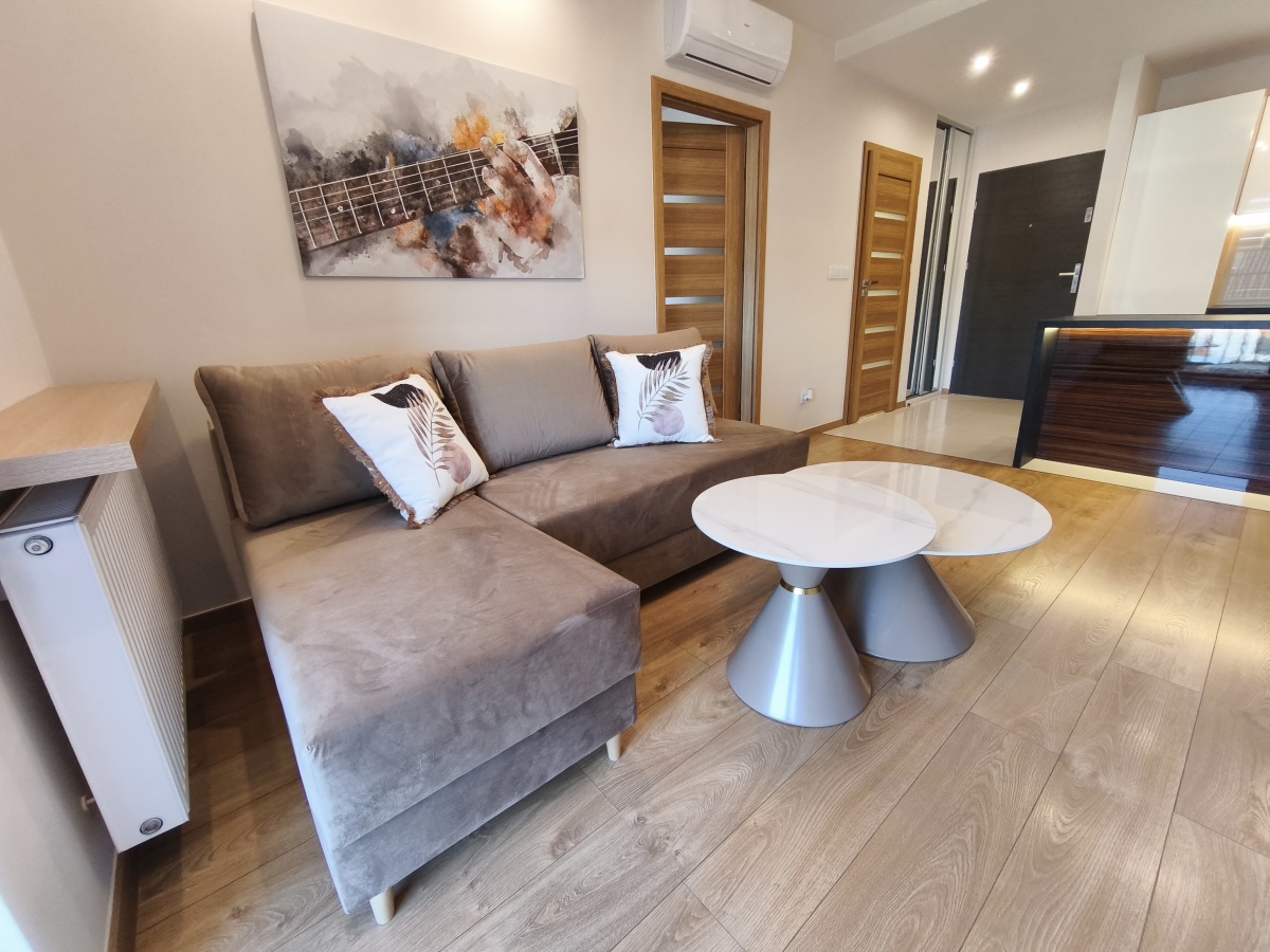 Wynajmę przytulne mieszkanie w wysokim standardzie wykończenia, 2 pokojowe z balkonem i prywatnym miejscem postojowym przed wejściem do bloku.