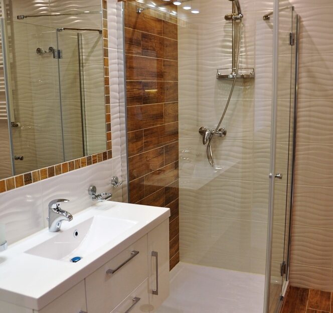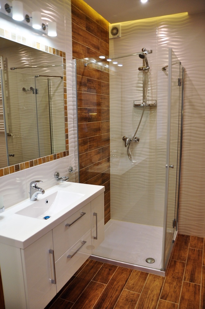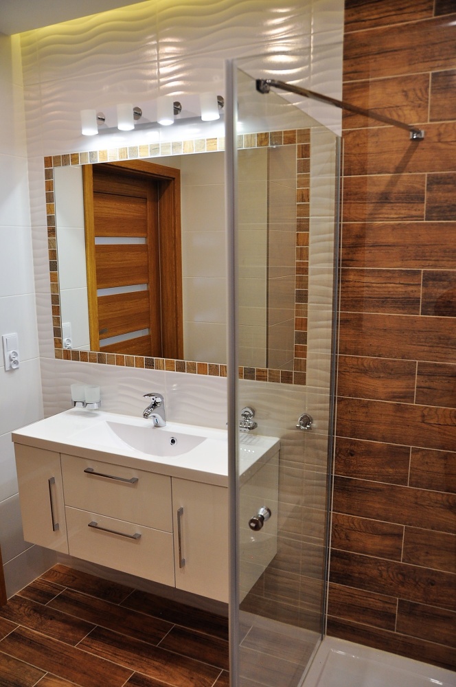 – Przestrzeń łazienki zaprojektowana jest 3 rodzajami oświetlenia, markową armaturą i wygodnym prysznicem oraz dużym lustrem.