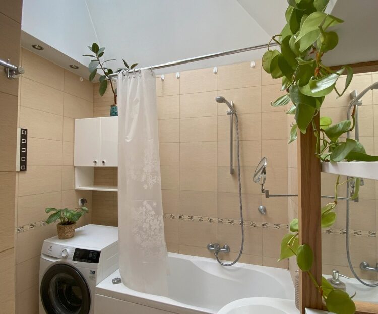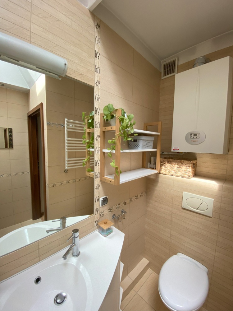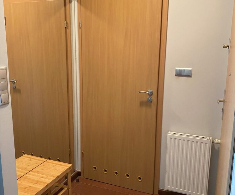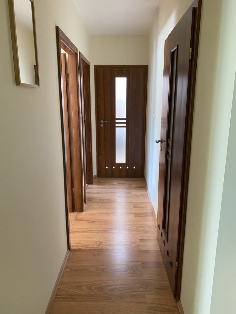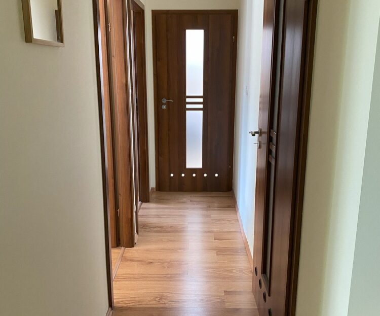 W skład mieszkania wchodzą trzy ustawne pokoje, salon z aneksem kuchennym, dwie łazienki, pomieszczenie gospodarcze oraz dwa balkony z pięknym widokiem na ogród i drzewa. Mieszkanie jest w pełni umeblowane i gotowe do zamieszkania – wyposażone w zmywarkę, lodówkę, kuchenkę, piekarnik i pralkę. Lokal oferuje bardzo dużo miejsca do przechowywania – w każdym pomieszczeniu znajdują się pojemne szafy, regały lub komody. Mieszkanie jest doskonałą alternatywą dla domu w zabudowie szeregowej.