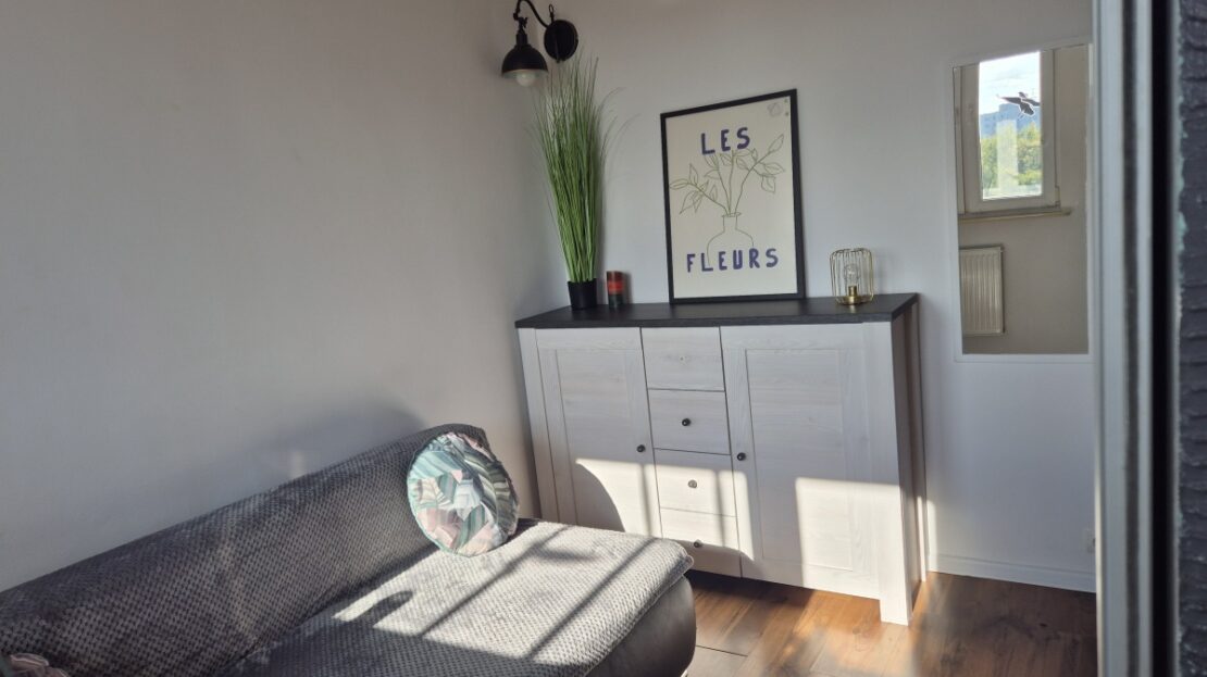 Układ: salon, sypialnia/2 pokój (istnieje możliwość wstawienia łóżka 140 x 200 cm), oddzielna kuchnia, przedpokój, łazienka, przyjemna loggia z systemem rozsuwanych okien. Mieszkanie jasne, czyste, wyposażone, gotowe do zamieszkania. Wydaje się być większe, niż jest. Posiada dużo miejsca do przechowywania rzeczy – specjalne schowki, duże pojemne szafy.