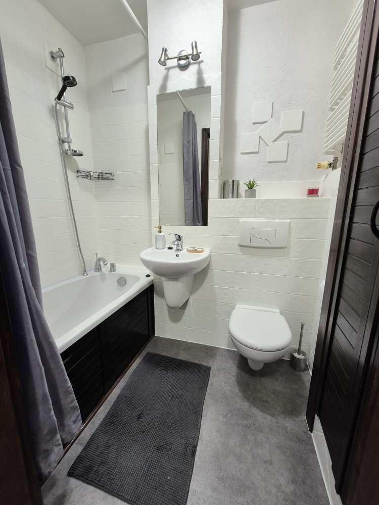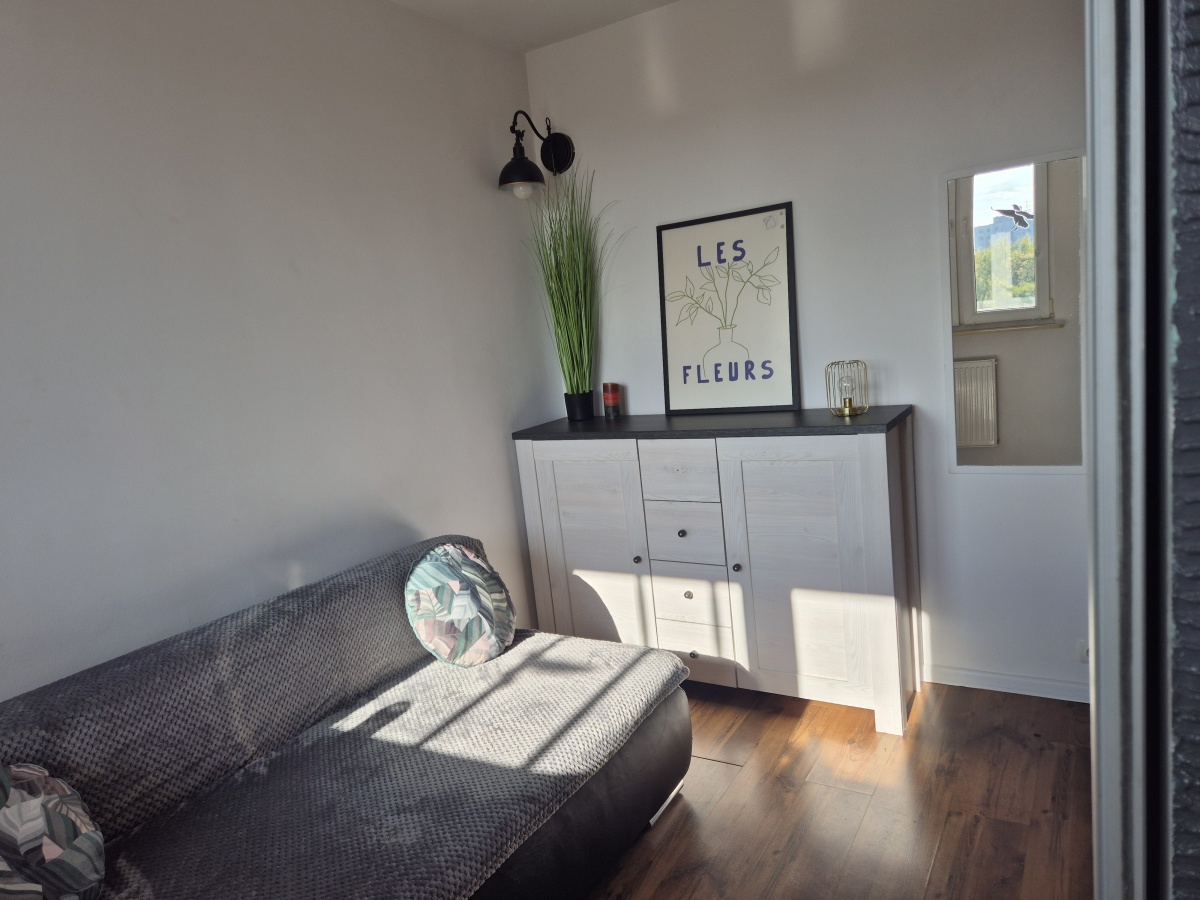 Układ: salon, sypialnia/2 pokój (istnieje możliwość wstawienia łóżka 140 x 200 cm), oddzielna kuchnia, przedpokój, łazienka, przyjemna loggia z systemem rozsuwanych okien. Mieszkanie jasne, czyste, wyposażone, gotowe do zamieszkania. Wydaje się być większe, niż jest. Posiada dużo miejsca do przechowywania rzeczy – specjalne schowki, duże pojemne szafy.