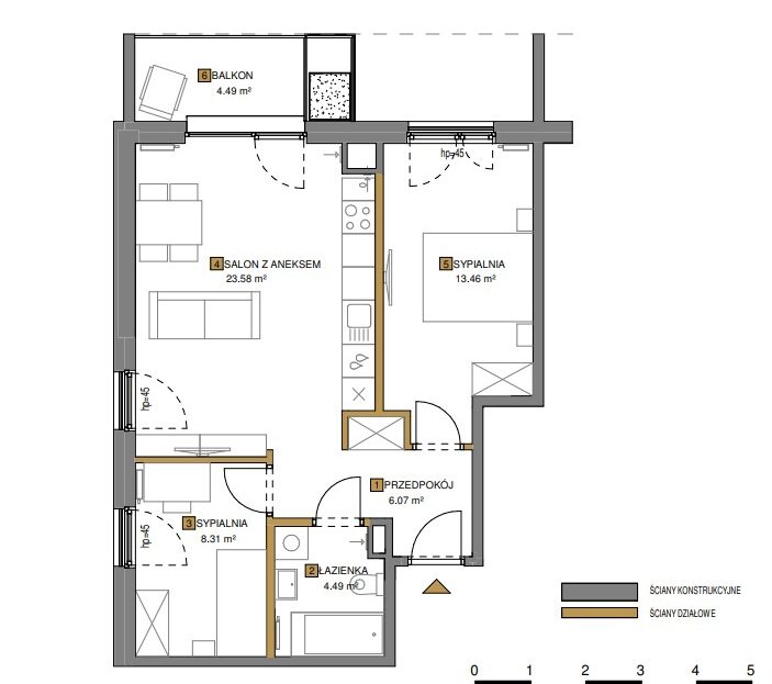 Dla mieszkania przygotowany jest projekt wykończenia pod klucz jak na wizualizacjach. Sprzedaż razem z gotowym projektem do dostosowania przez architekta.