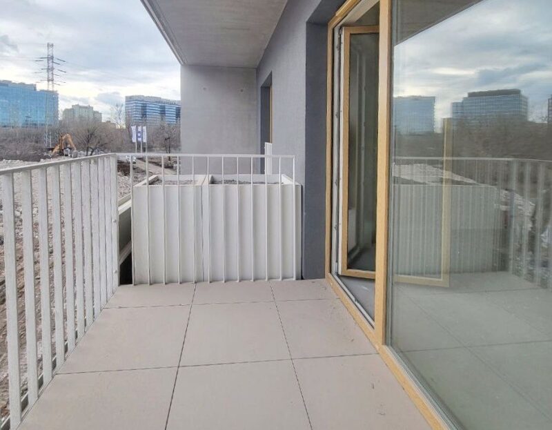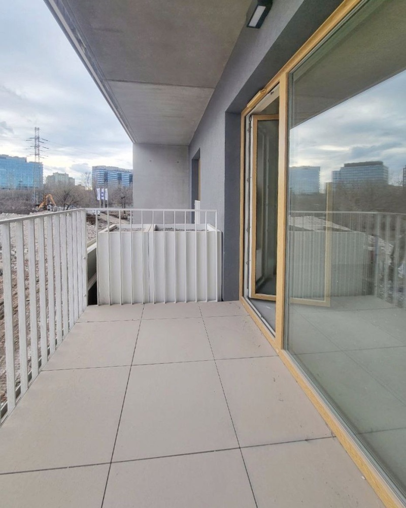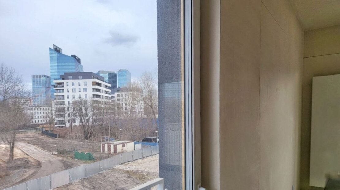 Mieszkanie znajduje się na 2. piętrze i wyróżnia się przemyślanym, funkcjonalnym rozkładem — salon z aneksem kuchennym, duża sypiania z miejscem na garderobę, druga sypiania/gabinet, łazienka + dodatkowo balkon. Z mieszkania widok na panoramę centrum Warszawy i biurowców przy Rondzie Daszyńskiego.