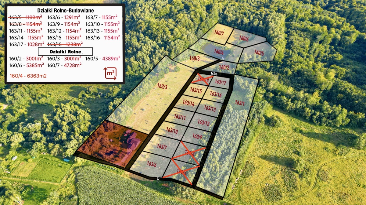 6 działek leśno-rolnych o pow ponad 2,7 ha z możliwością zabudowy mieszkalnej jednorodzinnej, z własnym, prywatnym lasem oraz z przepięknym, zarybionym stawem – całość za 599 000 zł!