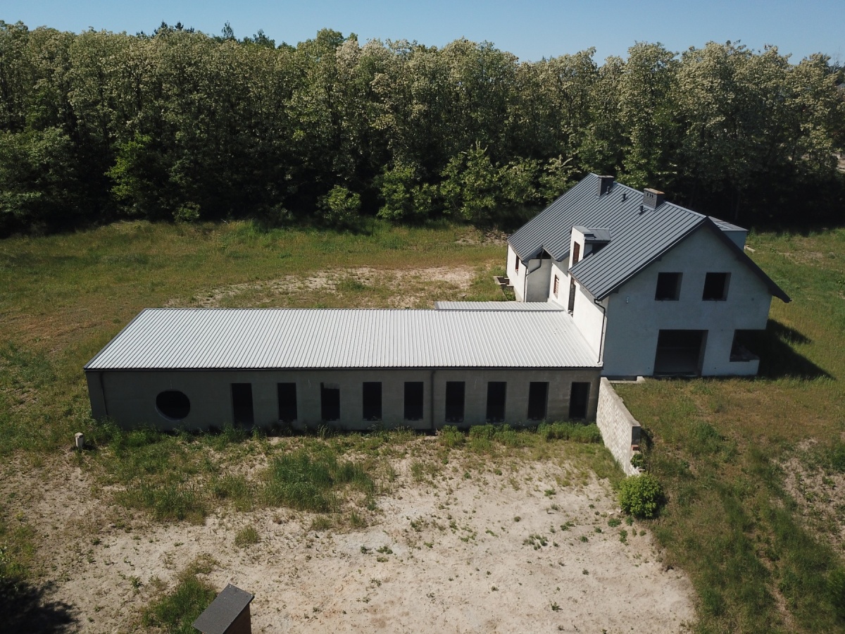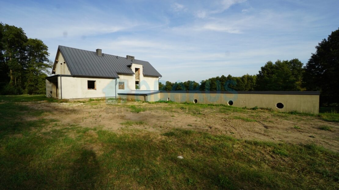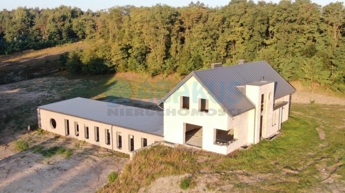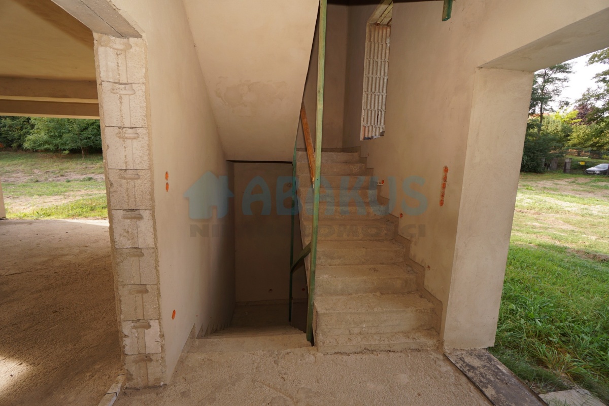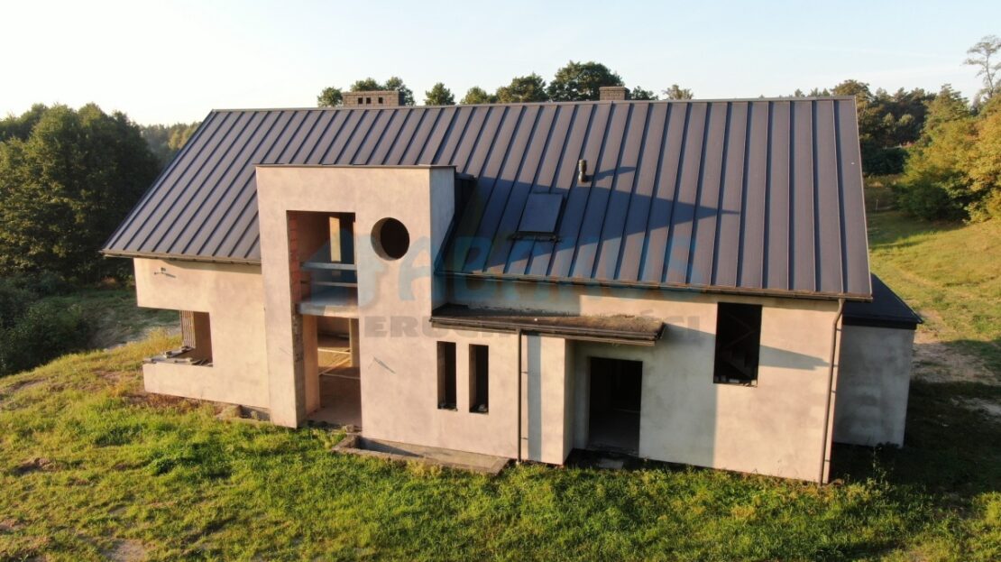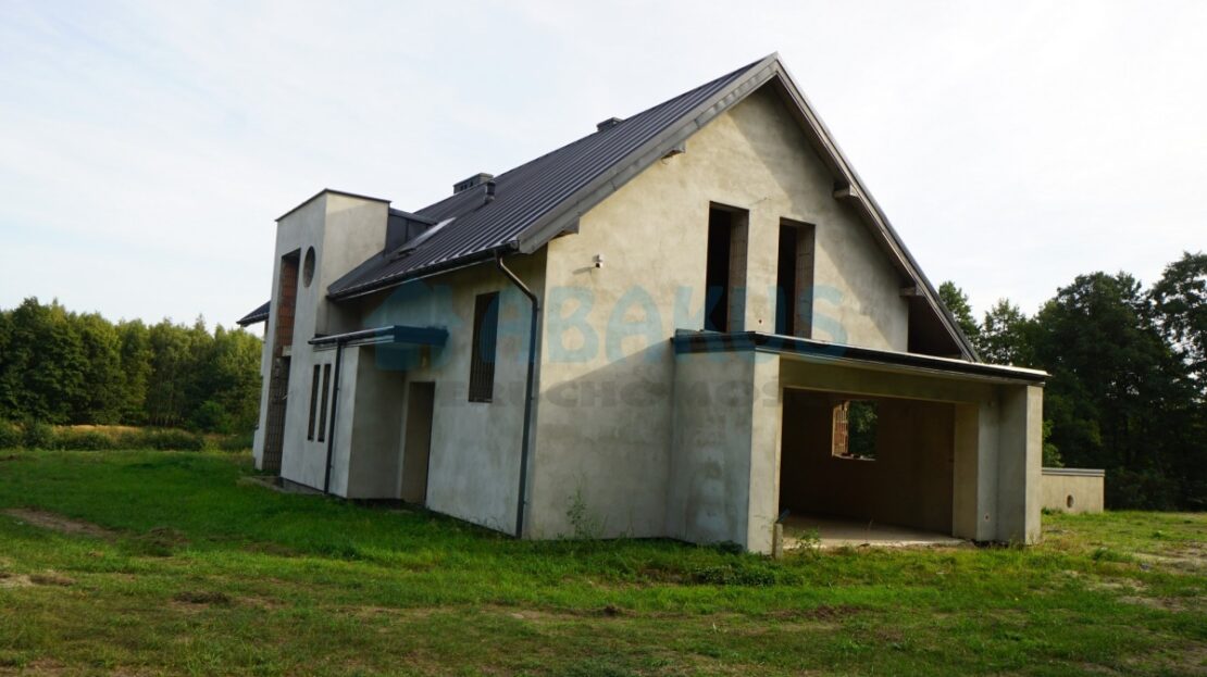 Nieruchomość zabudowana budynkiem mieszkalnym w stanie surowym.