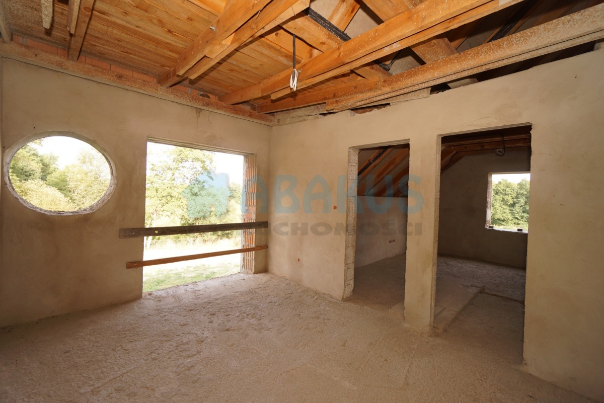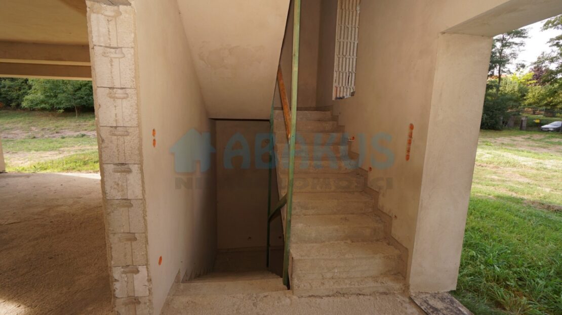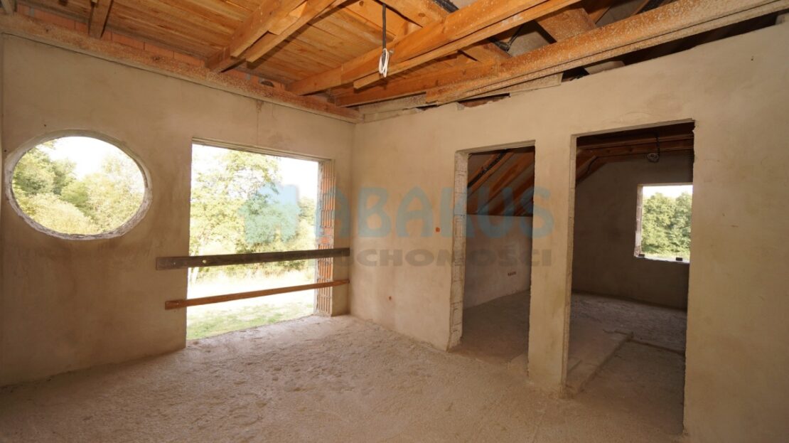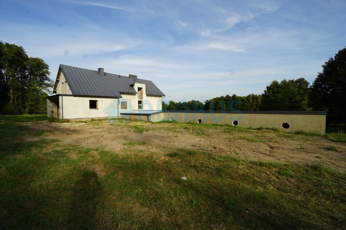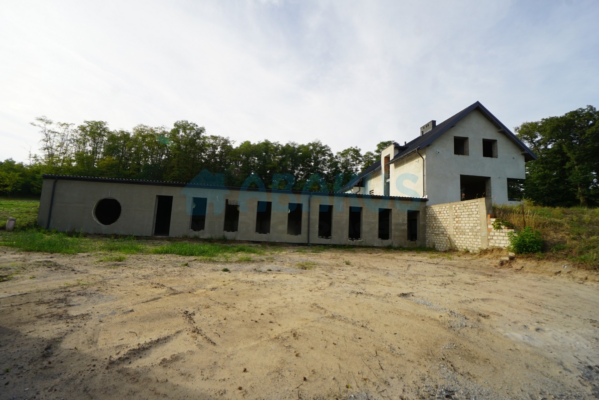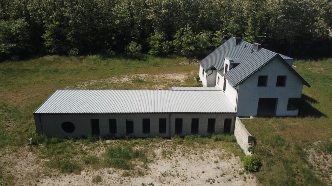 Nieruchomość zabudowana budynkiem mieszkalnym w stanie surowym.