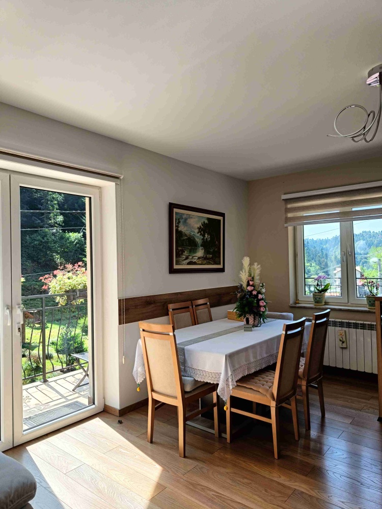 Nieruchomość usytuowana jest w pięknej okolicy otoczonej dookoła lasem, zaledwie 1800m od centrum.