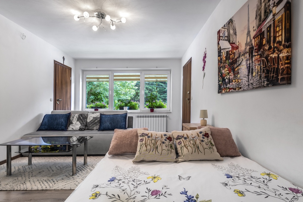 Parter obecnie jest wynajmowany i posiada bazę gości na booking oraz własną stronę.