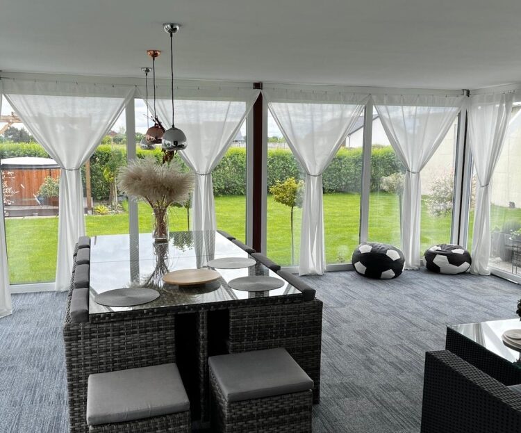 Jednym z największych atutów tej nieruchomości jest przepiękny ogród zimowy. Jest to idealne, całoroczne pomieszczenie rekreacyjne, które może służyć jako: