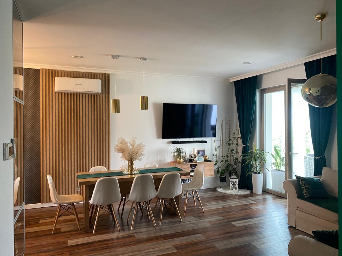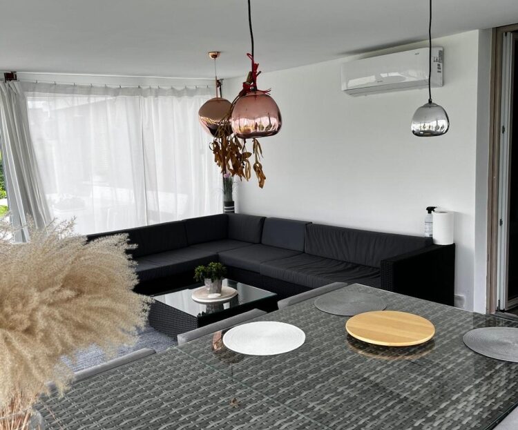 Dom ogrzewany jest za pomocą pompy powietrze-powietrze.Ogród zewnętrzny posiada nawodnienie oraz strefę relaksu jaką jest Jacuzzi całoroczne.