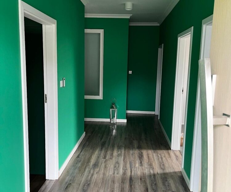 • Łazienka: Centralnie zlokalizowana, jedna duża, rodzinna łazienka. Wyposażona jest w nowoczesną armaturę, wannę (idealną na długie kąpiele) oraz prysznic.