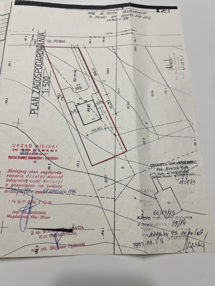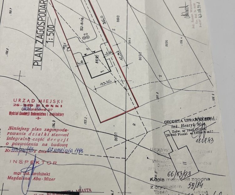 Zezwolenie na budowę już nieaktualne, jednak nadają się do wykorzystania. Ich posadowienie na działce przedstawia pierwotny plan zagospodarowania. Szczegóły techniczne co do zbrojenia ław, technologii wykonania murów fundamentowych, głębokości dostępne dla zainteresowanych