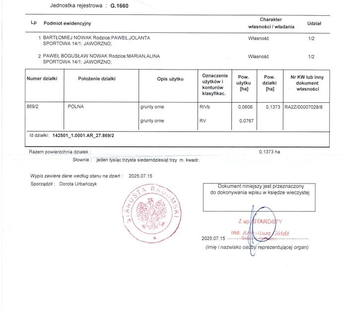 Identyfikator działki do znalezienia na Geoportalu: 142501_1.0001.AR_27.869/2