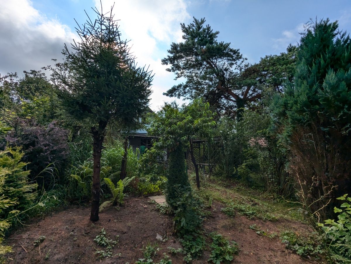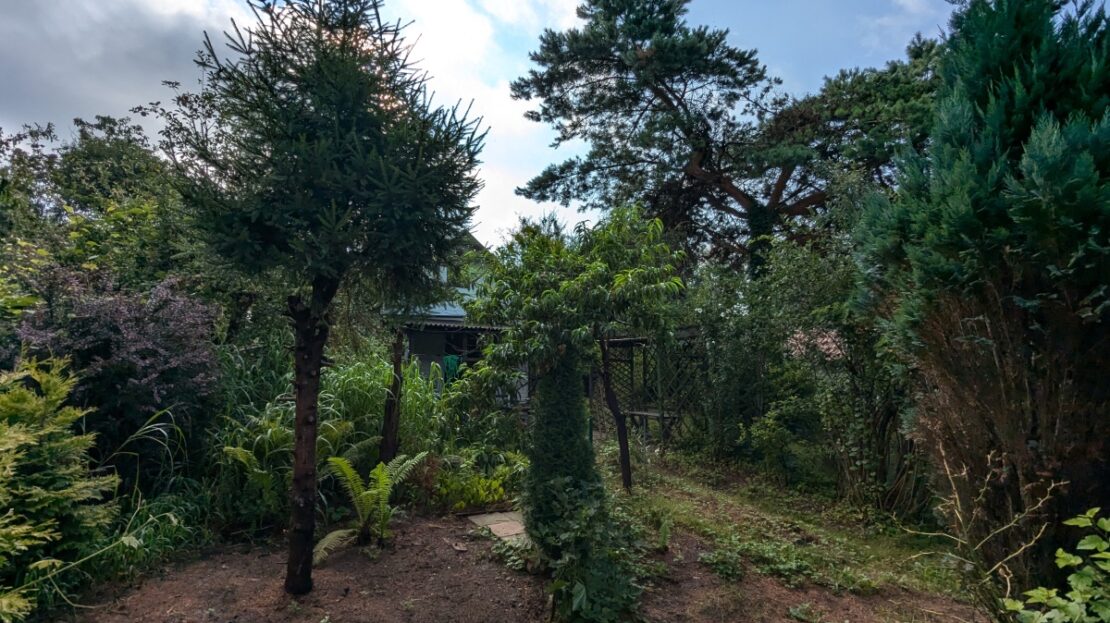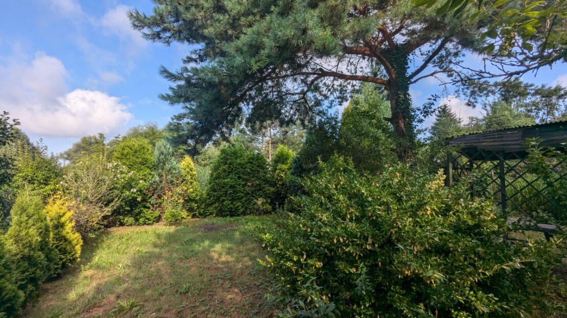 Ogród: Teren jest zagospodarowany – rosną na nim drzewka owocowe oraz ozdobne.