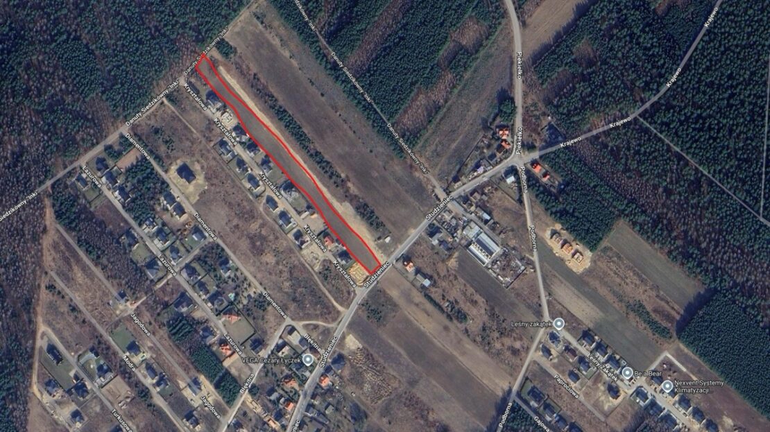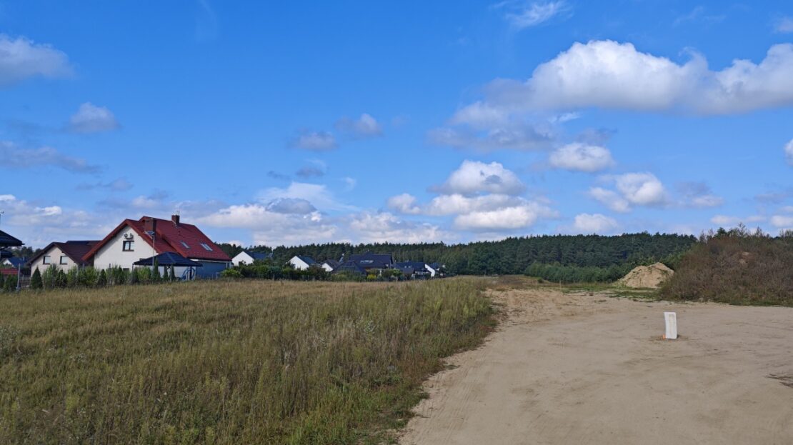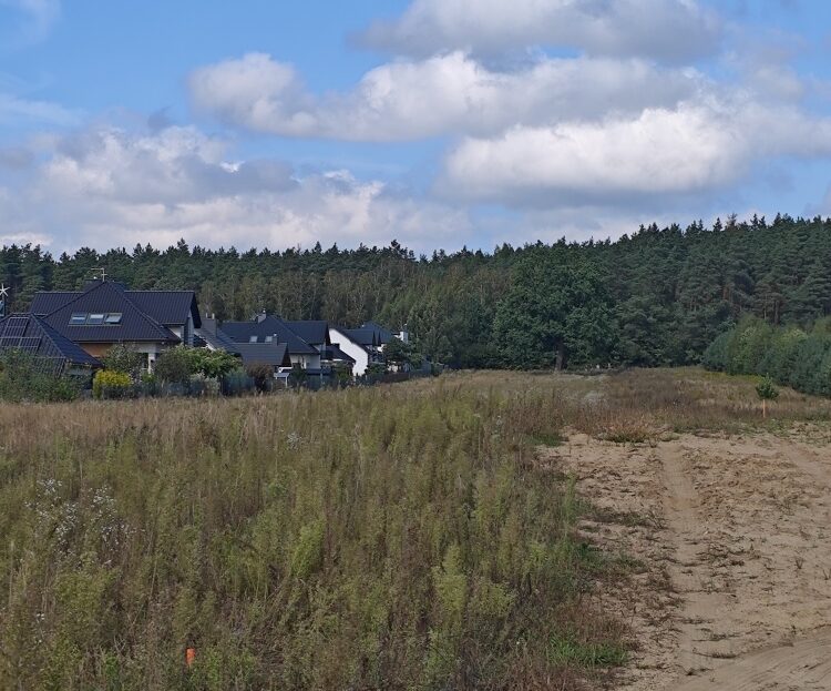 W pasie ziemi obok już wszystkie działki są pobudowane, ogrodzone i zamieszkałe.