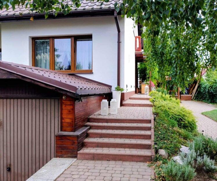 Zagospodarowana piwnica z kotłownią (ogrzewanie gazowe oraz piec na ekogroszek). Dwupoziomowy strych z możliwością adaptacji. Garaż w bryle budynku (dwustanowiskowy).