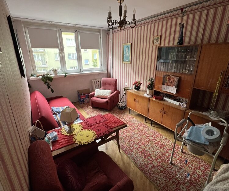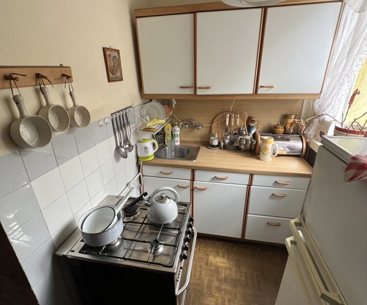 Mieszkanie składa się z dwóch pokoi, kuchni, łazienki, przedpokoju. Mieszkanie znajduje się na pierwszym piętrze. Z dużego pokoju wyjście na balkon.