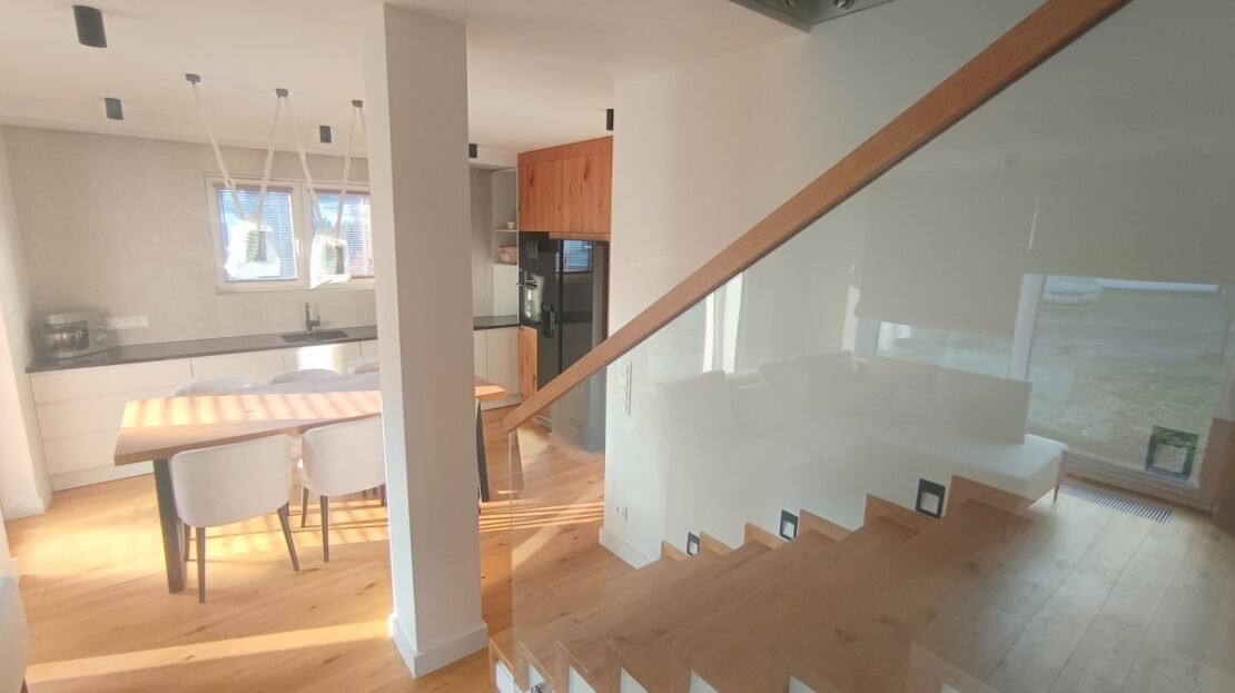 • Do balustrad na schodach użyto szkło hartowane i laminowane,