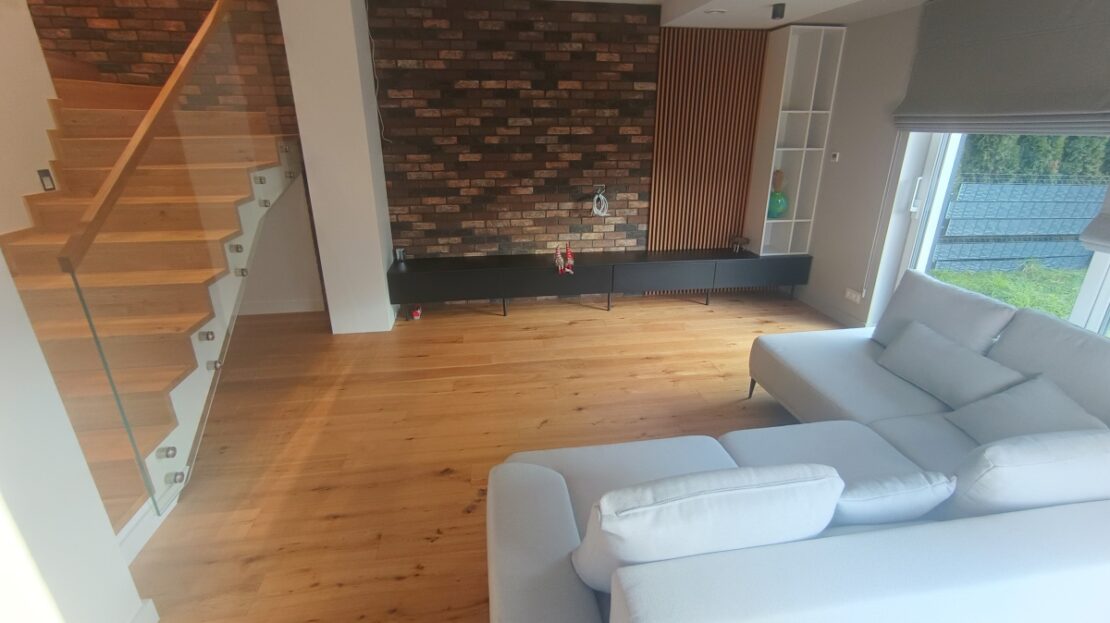 • Schody drewniane z dębu dobierane pod kolor podłogi,