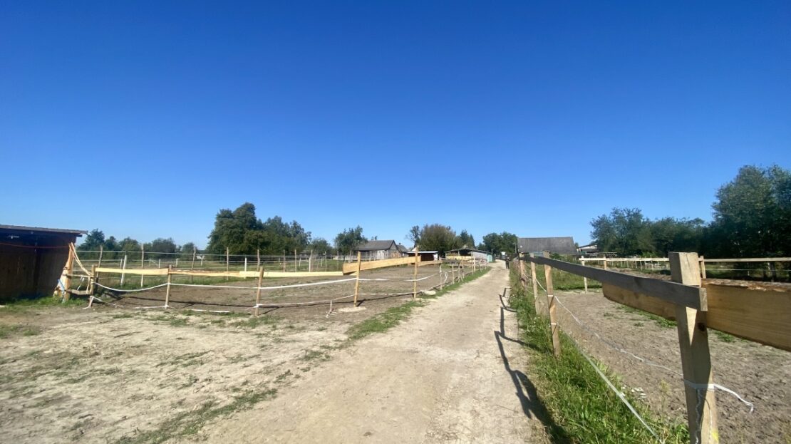 obecnie dzierżawiona sąsiednia działka 690 m2, o szerokości 10 m – służący poszerzeniu placu i padoków.
