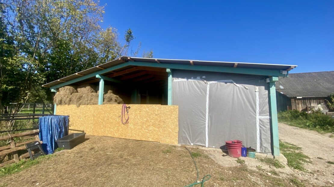 Zagrodzone padoki z wiatami (1 wiata 5×8 m oraz 2 wiaty 3×5 m)