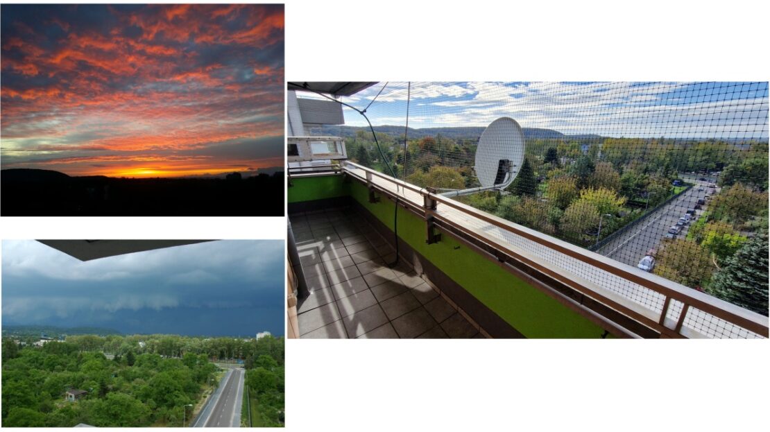 – balkon (widok na górki, Lasek Wolski, siatka przeciw gołębiom, wystawa południowo-zachodnia)