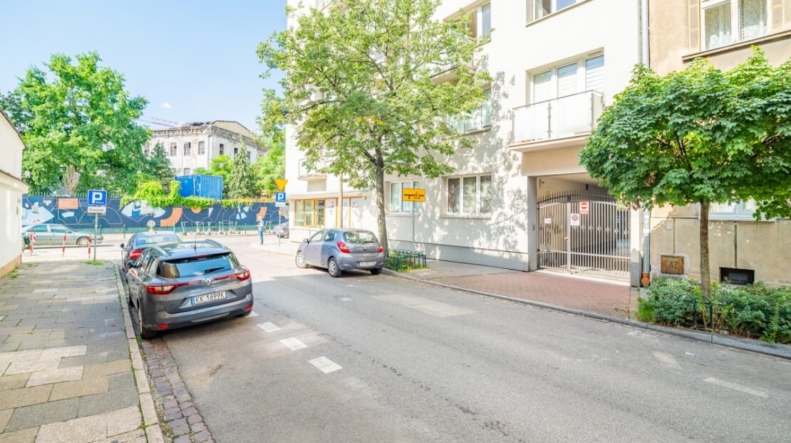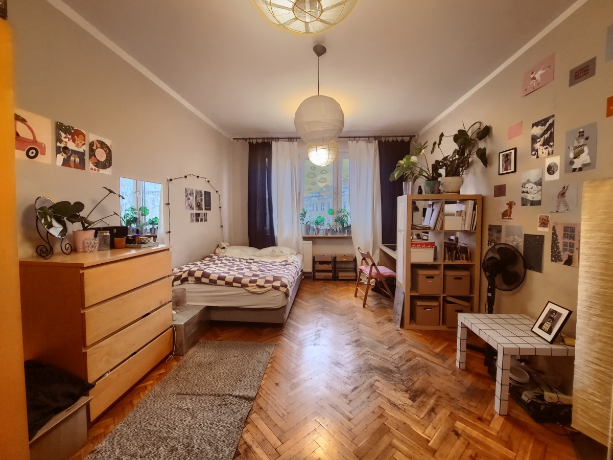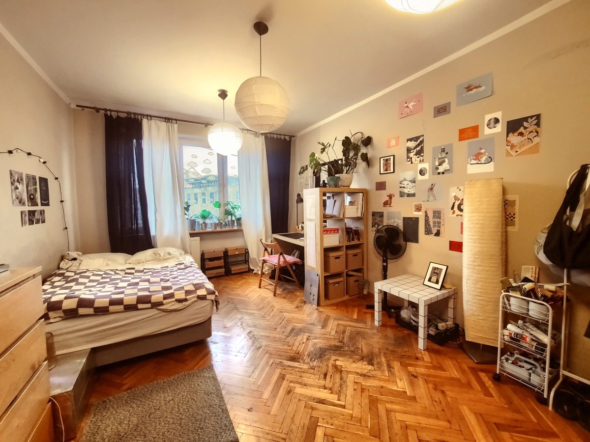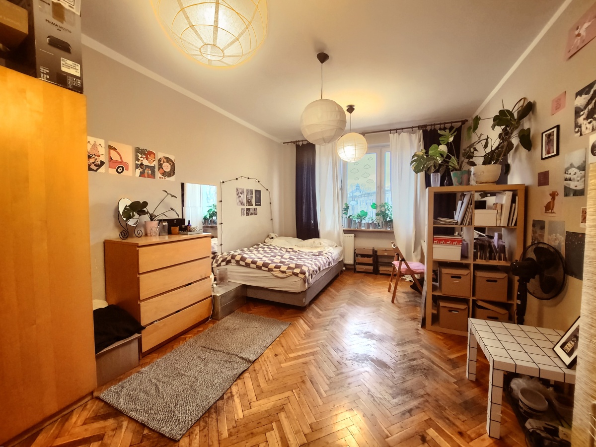 Mieszkanie dwustronne o południowej ekspozycji dwóch większych pokoi i północnej pokoju najmniejszego. Południowe okna i balkon wychodzą na ulicę a północne na wewnętrzny dziedziniec budynku.