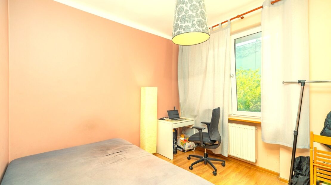 – mniejszy pokój o powierzchni prawie 10 metrów i wymiarach 3 na 3,3 metra