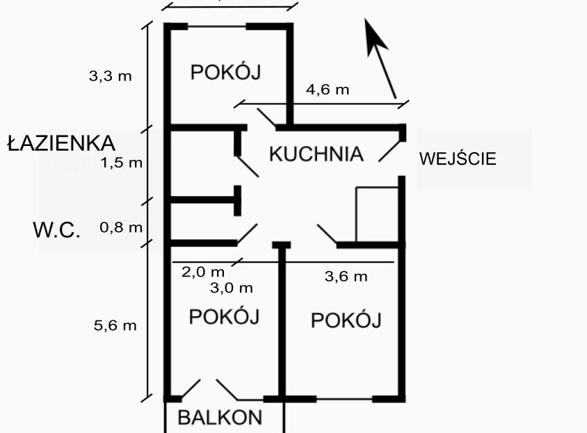 – łazienka o powierzchni około 3 metrów