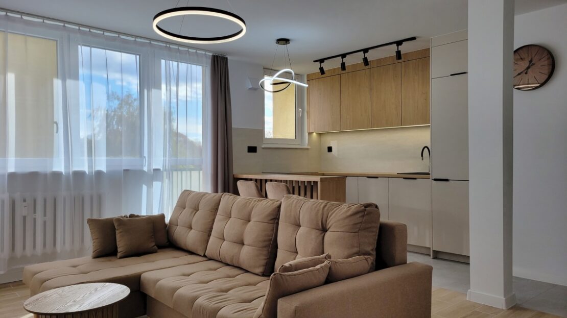 Apartament świeżo po generalnym remoncie – starannie zaprojektowany i wykończony w wysokim standardzie. Wyposażony w zabudowę meblową oraz sprzęt AGD – gotowy do wejścia od zaraz.