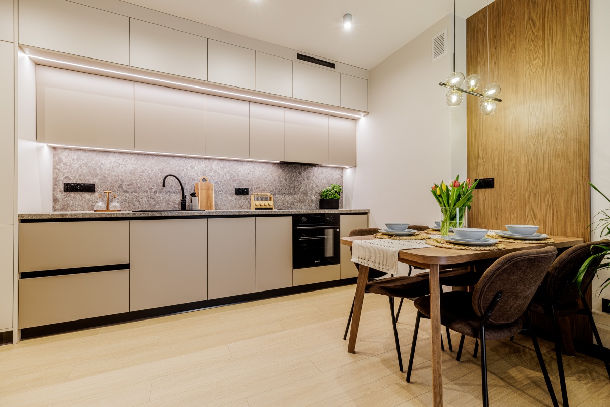 – nowe AGD w cenie: płyta indukcyjna, piekarnik, okap. Lodówka i zmywarka po stronie klienta.