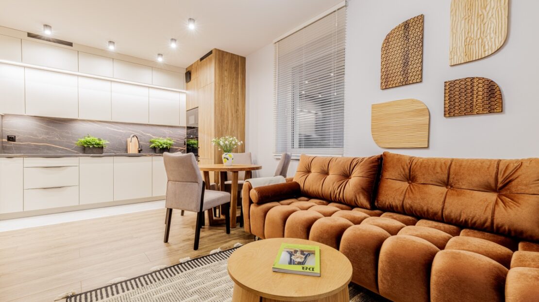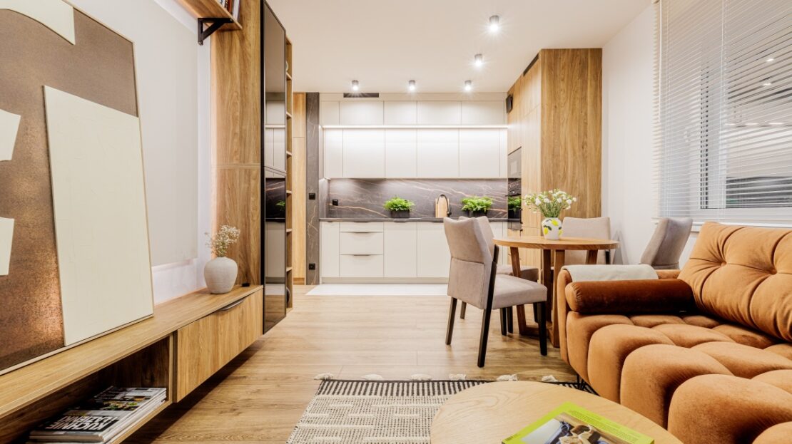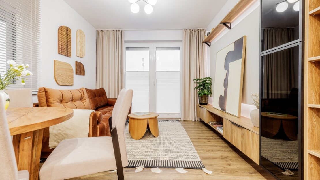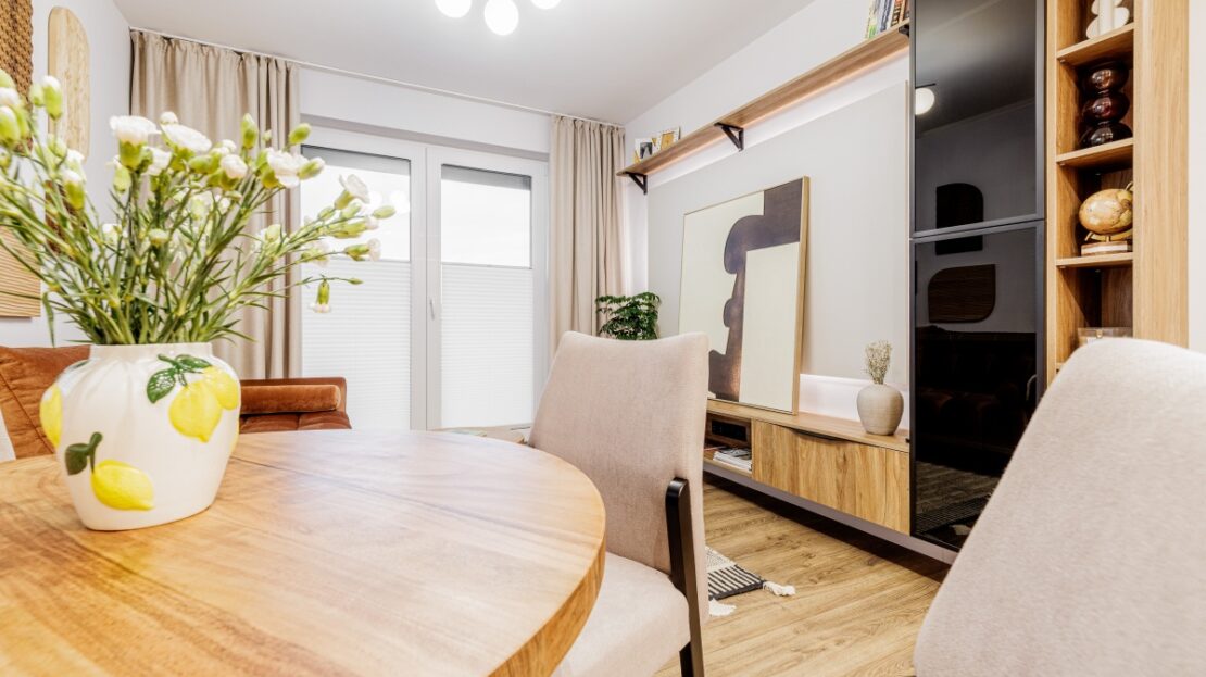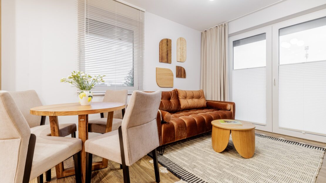 Wysokiej jakości materiały. Wszystkie meble widoczne na zdjęciu są w cenie mieszkania.