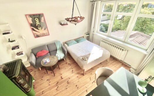 Mieszkanie zostało zaprojektowane przez renomowaną pracownię architektoniczną i wykończone z dbałością o każdy detal. Jest w pełni umeblowane oraz kompleksowo wyposażone w sprzęt RTV i AGD renomowanych marek. Duże okna wychodzą na południowy zachód, dzięki czemu wnętrze jest jasne i pełne naturalnego światła przez cały dzień.