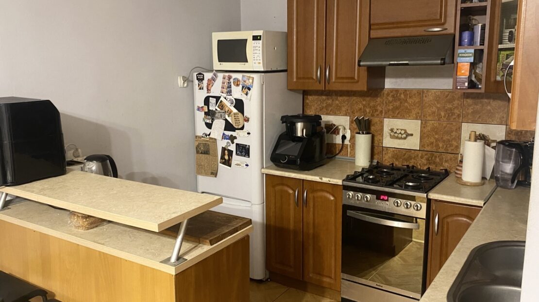 1) Pokój a aneksem kuchennym o łącznej powierzchni 20,00 m2 – w cenie meble kuchenne ze sprzętem AGD ( kuchenka gazowo-elektryczna, okap, lodówka) komoda, szafa, kanapa.