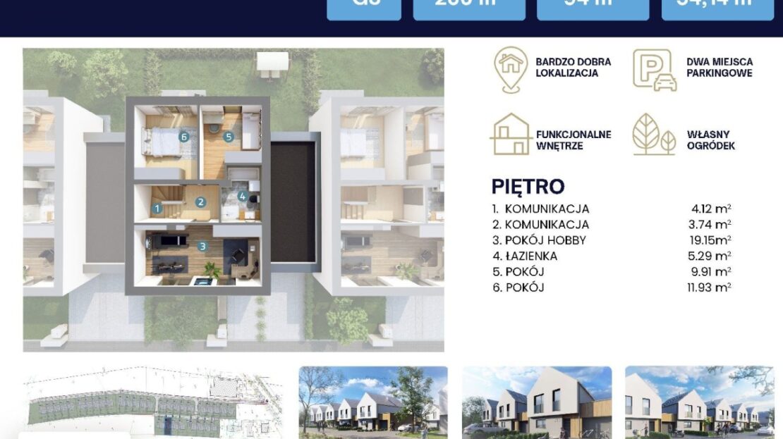 Na sprzedaż 4-pokojowy dwukondygnacyjny dom w zabudowie szeregowej o pow. użytkowej 124,85 m2 z ogródkiem w stanie deweloperskim w nowej inwestycji na południowej części Rzeszowa na osiedlu Budziwój.
