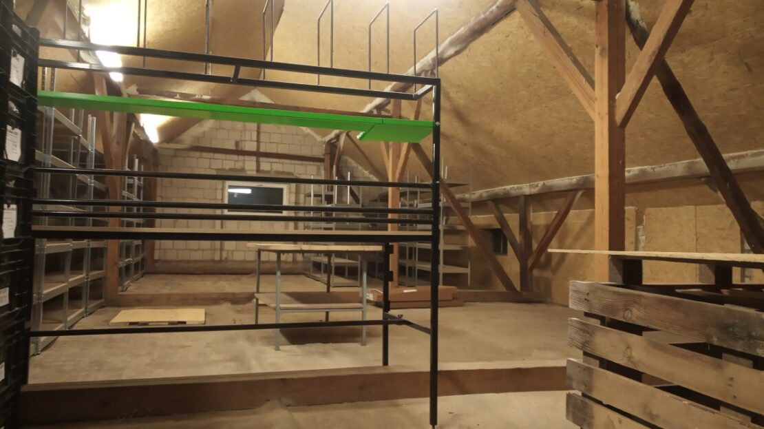 TANIO, ocieplony magazyn, regały/stoły, toaleta