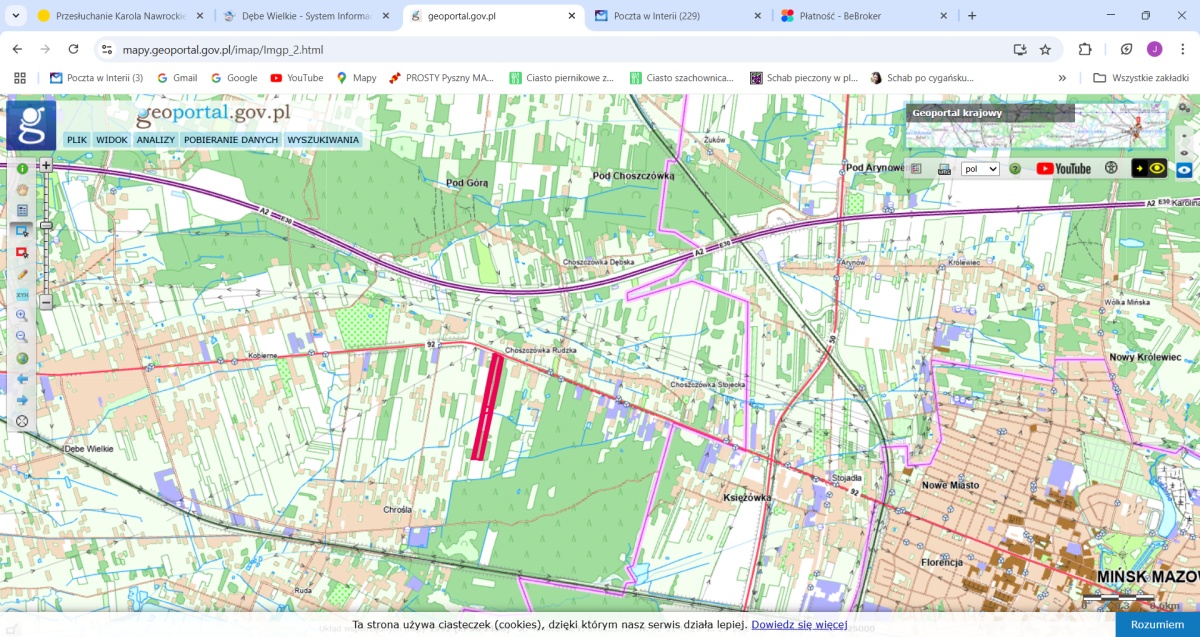 Sprzedam teren inwestycyjny o pow. 7,7574 ha (77.574 m2) w miejscowości Choszczówka Rudzka, gm. Dębe Wielkie. Dziaka położona bezpośrednio przy drodze krajowej DK92 z dostępem do wszystkich mediów – sieć elektroenergetyczna, sieć wodociągowa, sieć gazowa, sieć telekomunikacyjna – w granicy działki od strony DK92.